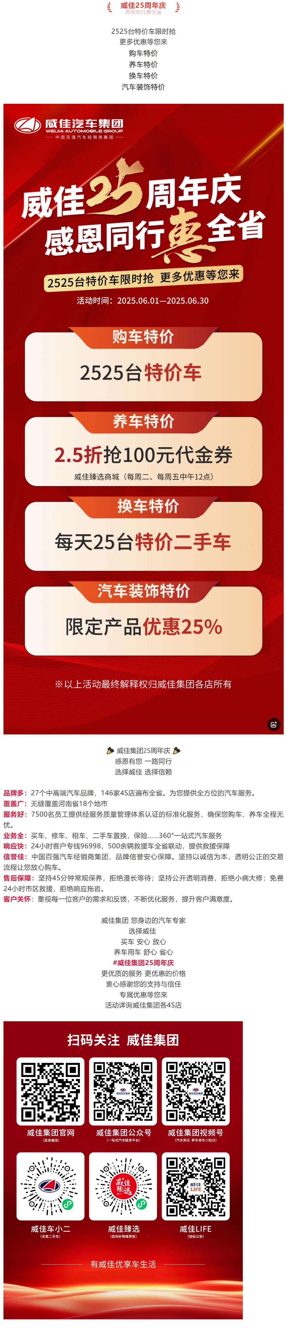 【威佳25周年庆】2525台特价车限时抢 更多优惠等您来