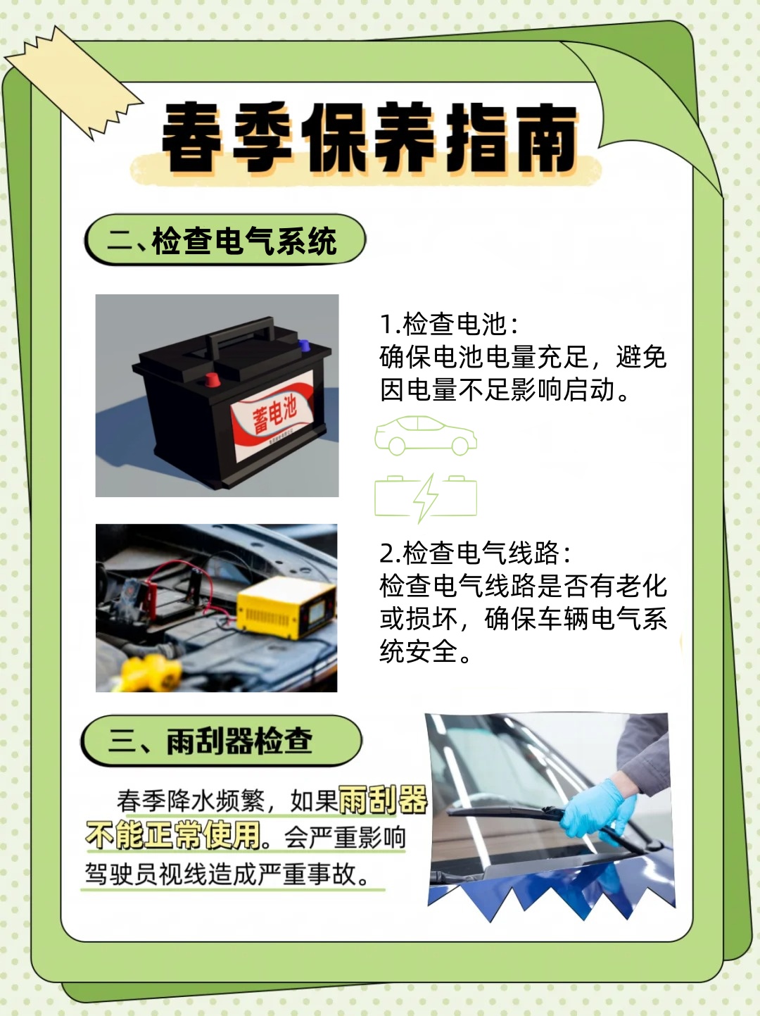 春季降水频繁,雨刮器的正常工作至关重要。