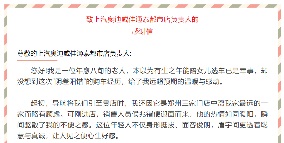 【威佳温度】字字暖心 句句真情——一封来自年逾八旬老人的感谢信